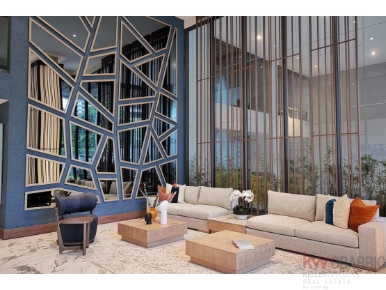 Este apartamento de 3 recámaras, completamente amoblado y decorado, cuenta con una amplia Sala-Comedor con acceso a un extenso balcón y vistas panorámicas a la ciudad y las montañas. La cocina cerrada con isla, zona de lavandería, cuarto y baño de empleada, 3 recámaras con baños privados, walk-in closet en la recámara principal y den complementan la elegancia de este espacio.
